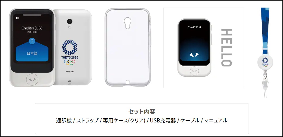 ポケトーク Sは、クラウド上のAI翻訳エンジンを活用した翻訳機で、ポケトーク S 東京オリンピックモデルとポケトーク S 東京パラリンピックモデルは、本体背面にエンブレムをあしらい、専用ケースや専用ストラップをセットにした東京2020(TOKYO 2020)公式ライセンス商品。