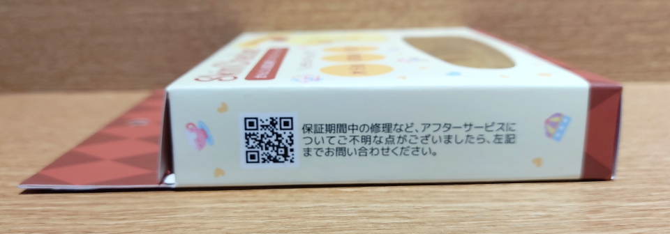 個装箱裏面には簡単な製品紹介、使用方法、注意事項が記載されている。左側面のQRコードをスマートフォン(スマホ)で読み取るとhttps://belulu.jp/にアクセスできる。