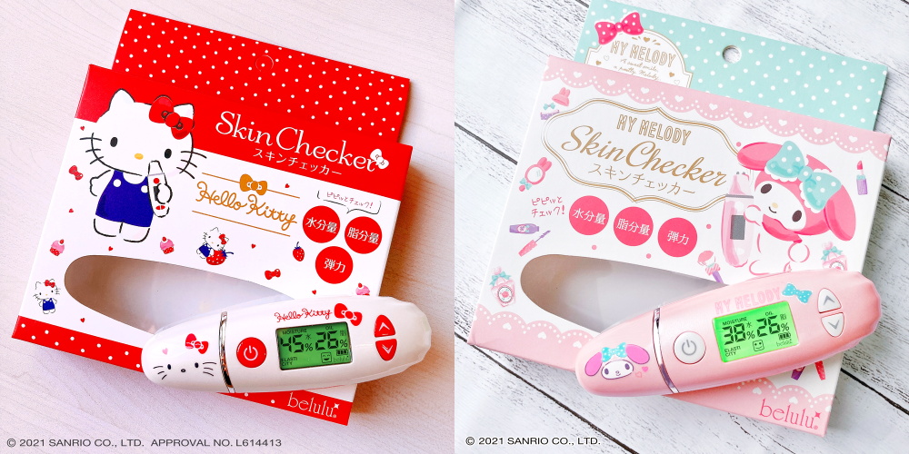 ムーミンのコラボモデルと同じタイミングの今年2月に、サンリオキャラクターとのコラボ製品として、「美ルル スキンチェッカー【ハローキティ】<belulu Skin Checker Hello Kitty>(型番:KRD1042KT)」を含む4アイテムが発表された。さらに今年6月にはサンリオキャラクターのコラボ製品としては第5弾、美ルル スキンチェッカーのサンリオキャラクターコラボとしては2つ目の製品となる「美ルル スキンチェッカー【マイメロディ】<belulu Skin Checker My Melody>(型番:KRD1042MM)」を発表。