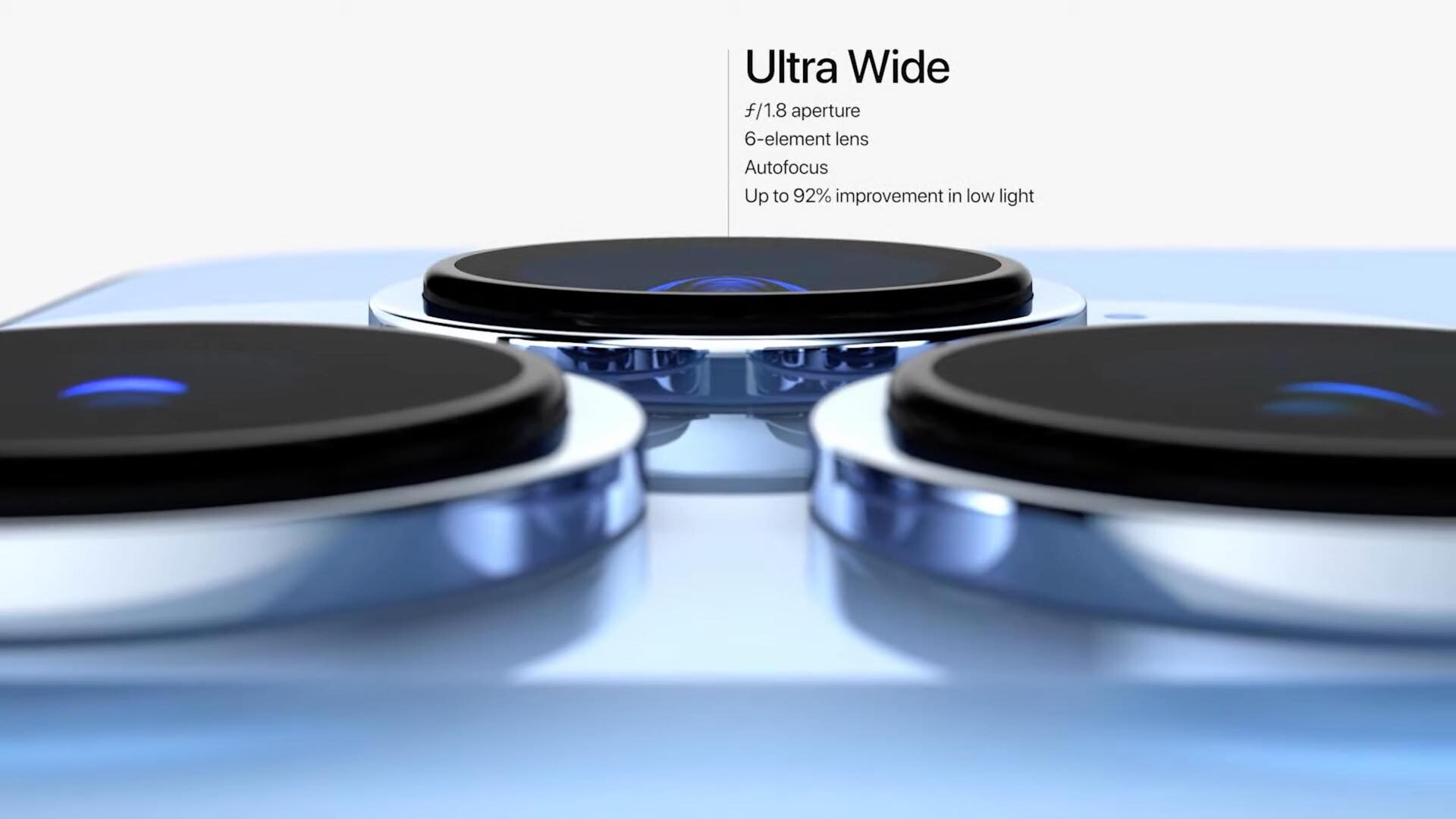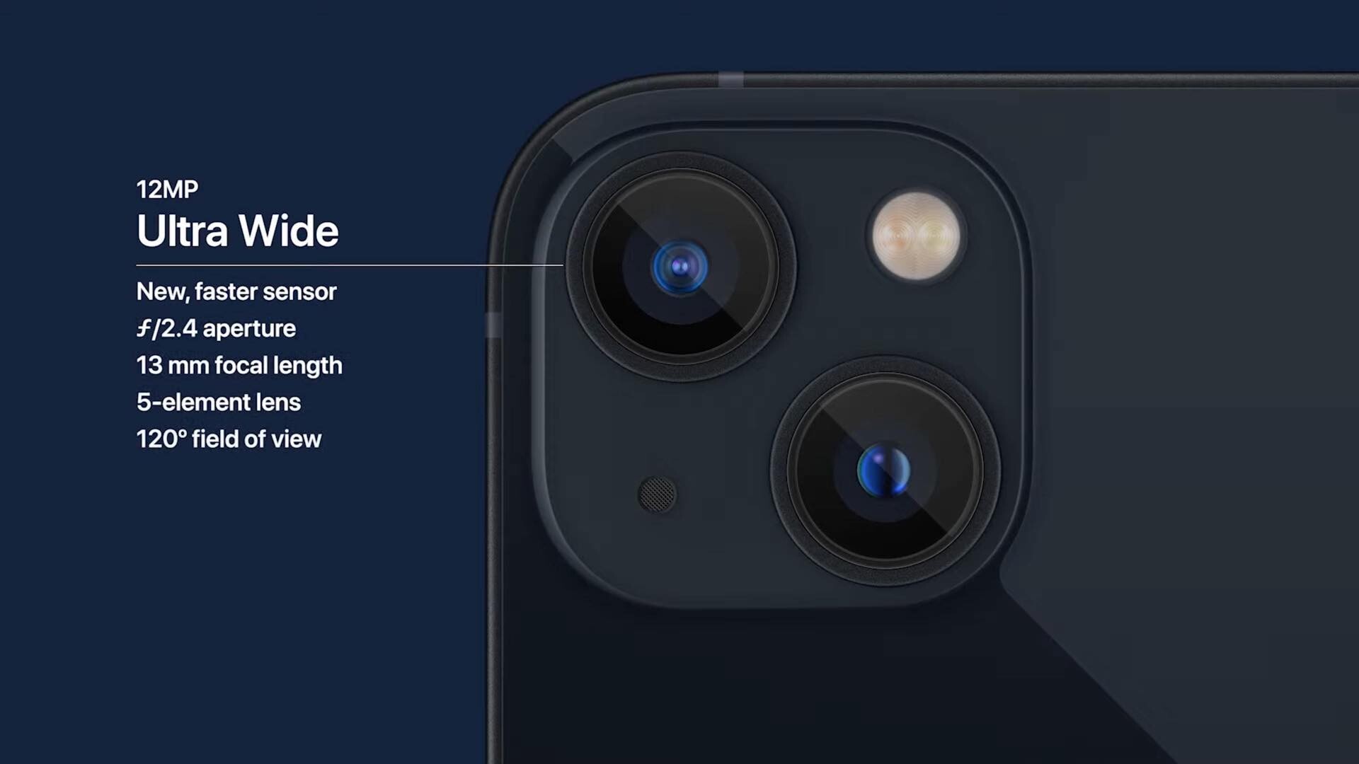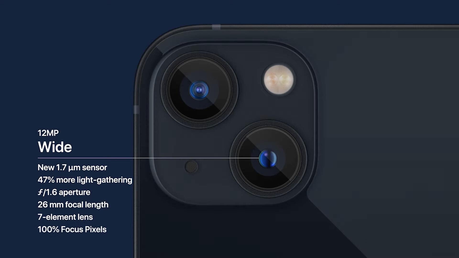 また新たにセンサーサイズが大きくなり、iPhone 12シリーズではiPhone 12 Pro Maxだけでしたが、iPhone 13シリーズではiPhone 13 Pro Maxだけでなく他の3機種もメインの広角カメラにはセンサーシフト光学式手ぶれ補正(OIS)を採用し、通常モデルはiPhone 12 Pro Maxと同じ1画素1.7μmになって前機種よりも47%も明るくノイズの少ない撮影ができ、上位モデルはさらに大きな1画素1.9μmになってiPhone 12 Pro Maxと比べて1.5倍明るくなるなどと暗所性能が向上し、ナイトモードはより明るく綺麗に撮影できるようになっています。