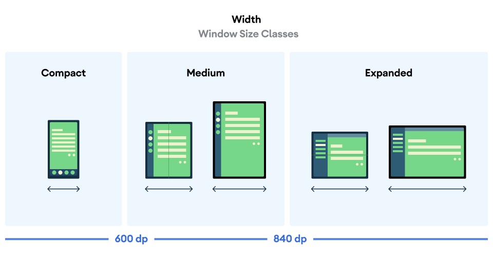 ウィンドウサイズクラスはサイズ変更可能なアプリケーションレイアウトを設計および開発、テストするための意見の分かれたビューポートブレークポイントのセットです。ウィンドウサイズクラスのブレークポイントは、コンパクト、ミディアム、および拡張の3つのカテゴリに分割されています。