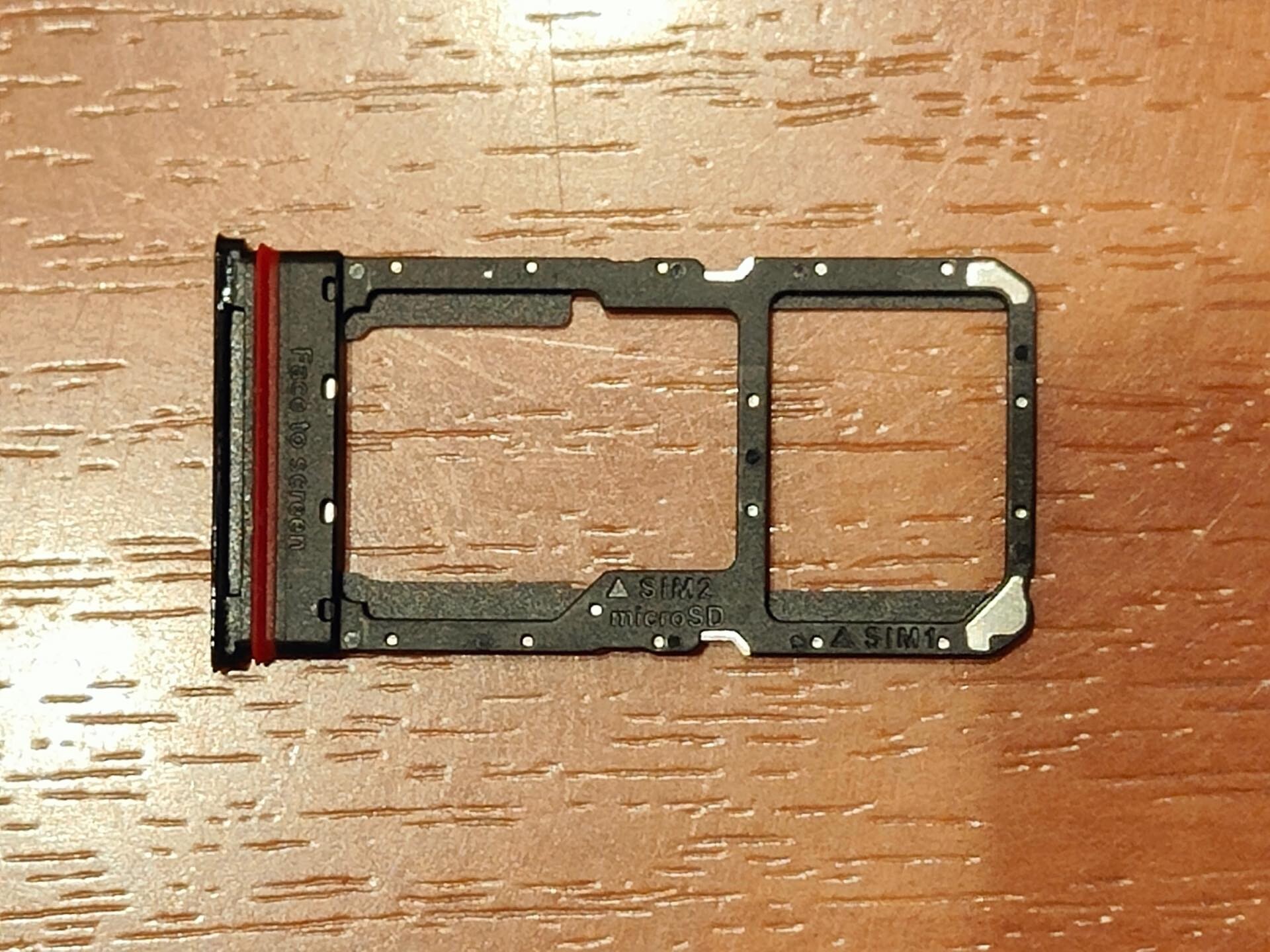 カードスロットをSIMピンで引き出したところ。nanoSIMカード(4FF)が2枚装着可能ですが、片方はmicroSDカードとの排他となっています。またSIMはeSIMにも対応していますが、トリプルSIMには非対応です