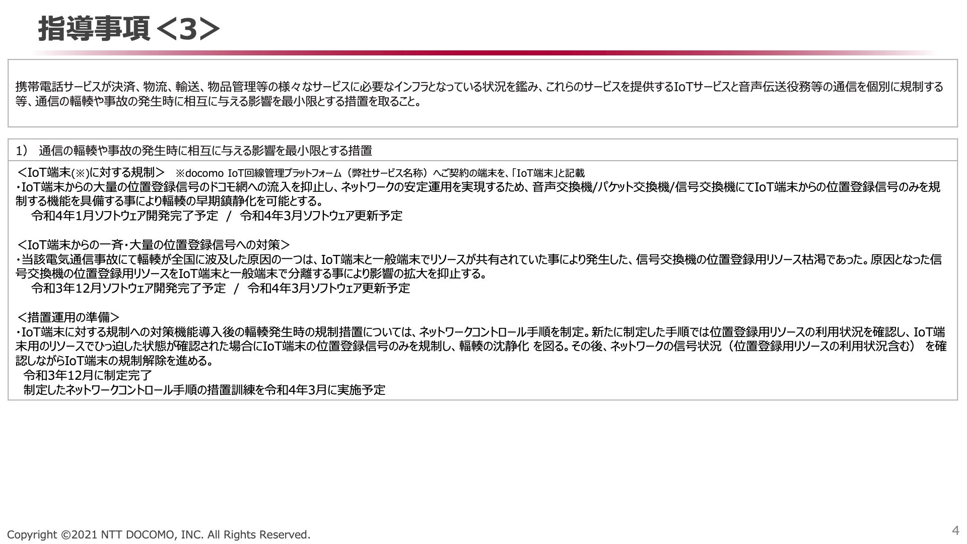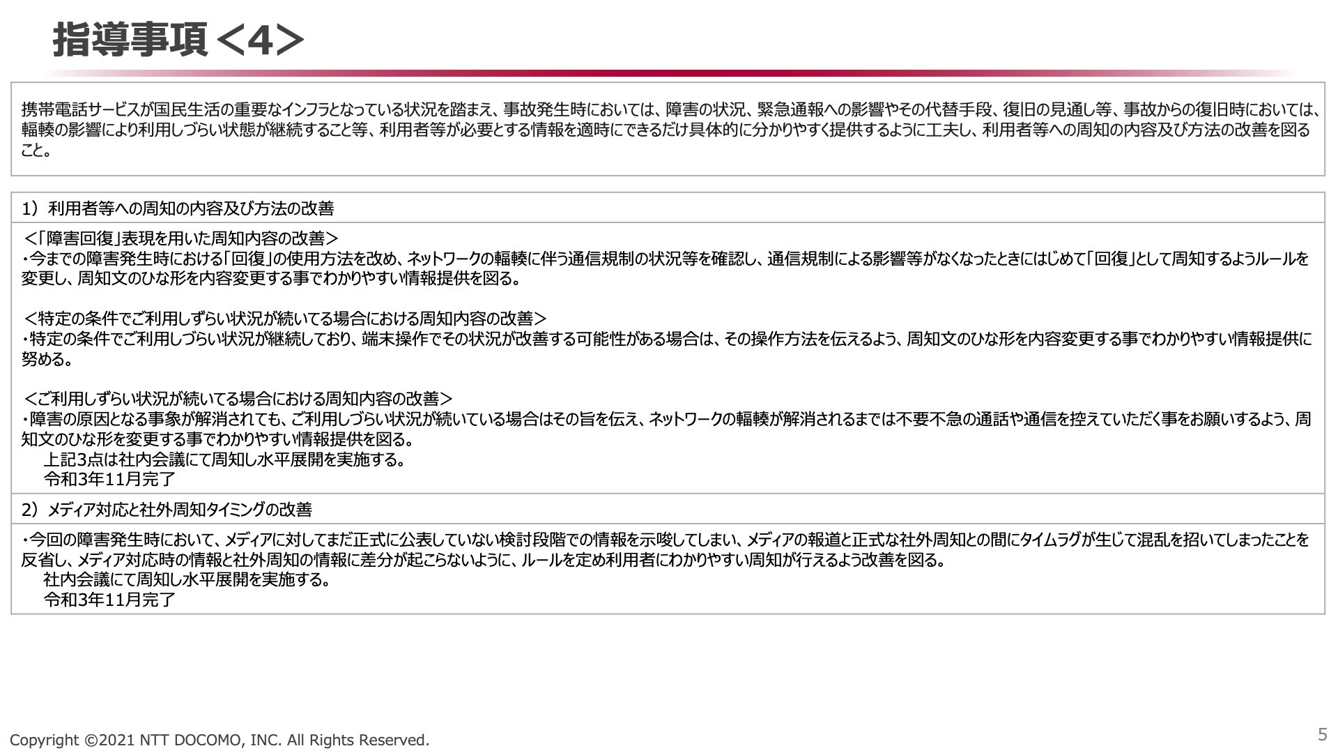 ・報道発表資料 : 2021年10月14日の通信サービス障害の行政指導に対する報告書を提出 | お知らせ | NTTドコモ