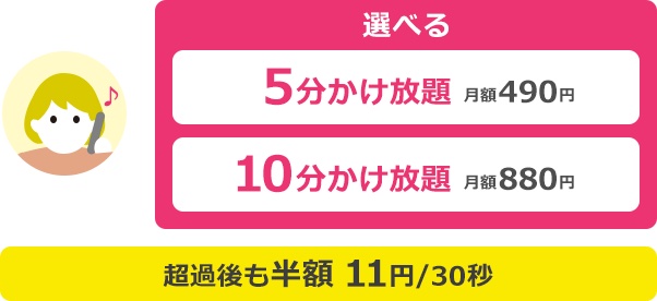 5分かけ放題オプションは1回当たり5分以内の国内通話を回数に制限なく利用することができるオプションサービスで、オプション料は月額490円(金額はすべて税込)となっており、料金プラン「NEOプラン」(20GB)および「バリュープラス(VS・VM・VL)」(3GB・5GB・10GB)のほか、旧プランも対象となります。