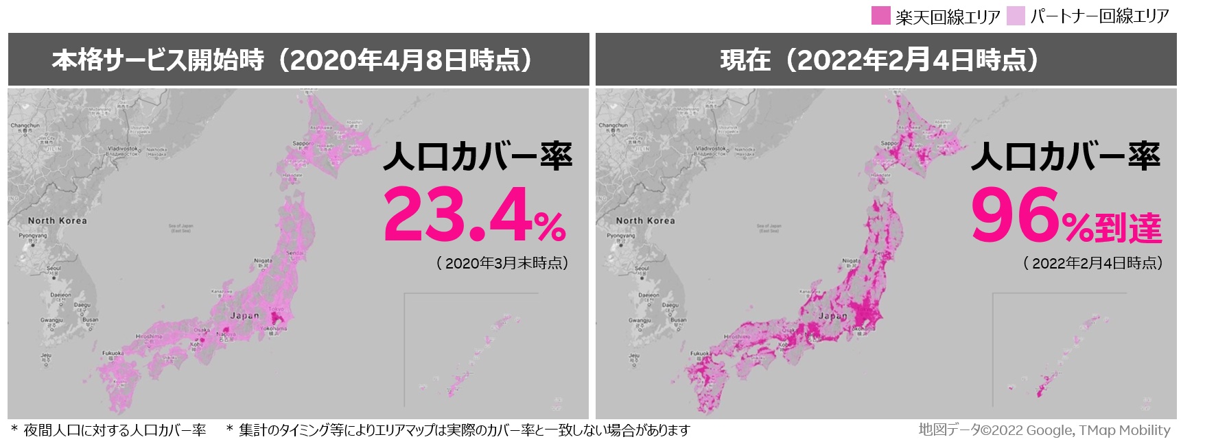 | ついに4Gの楽天回線エリアが人口カバー率96%に到達! |