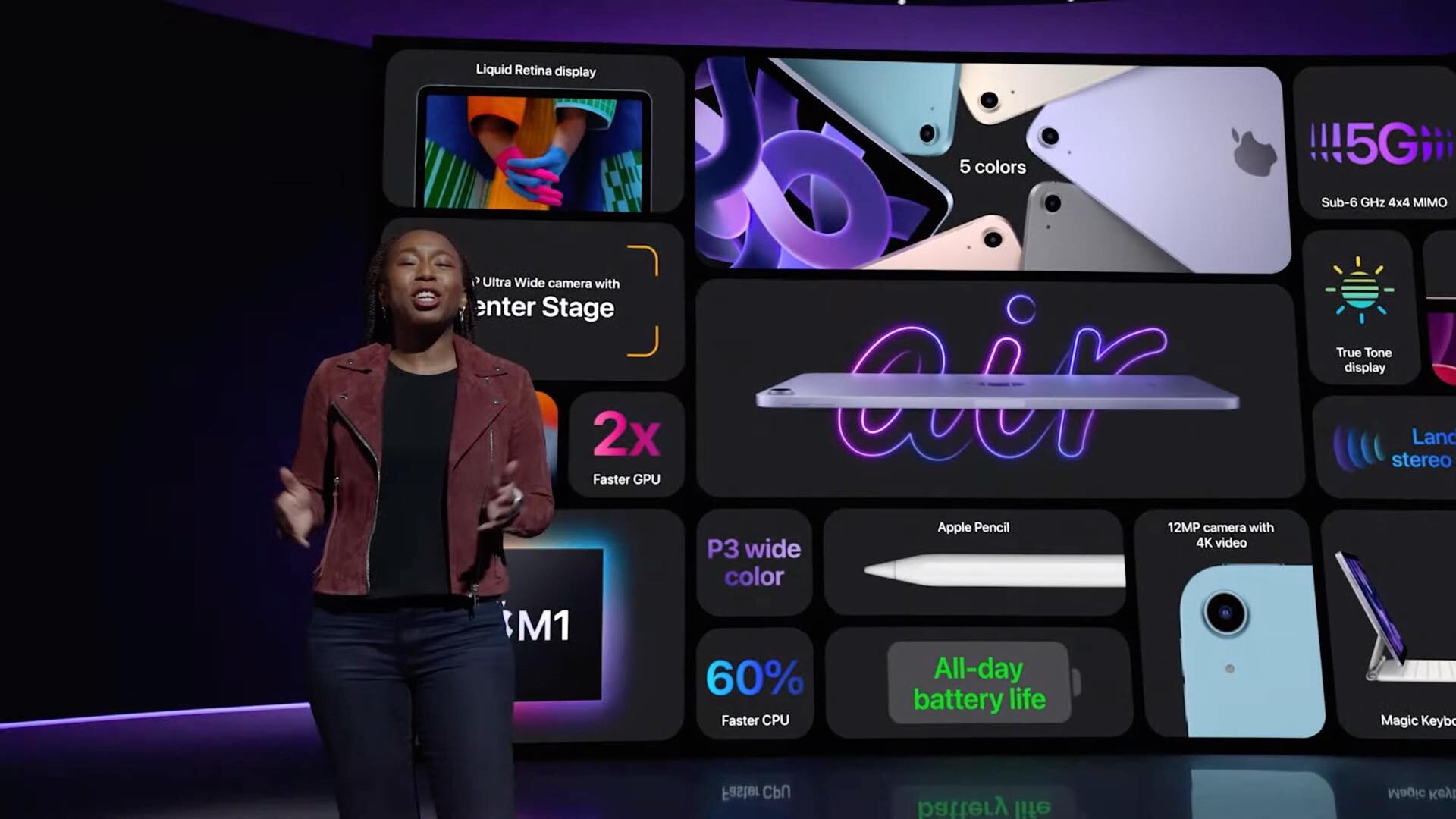 Appleは8日(現地時間)、オンラインにて新製品発表会「Apple Event - Peek performance.(最高峰を解禁。)」を開催し、新たに5G対応や独自開発のチップセット(SoC)「Apple M1」を搭載した全画面デザインの10.9インチタブレット「iPad Air(第5世代)」を発表しています。