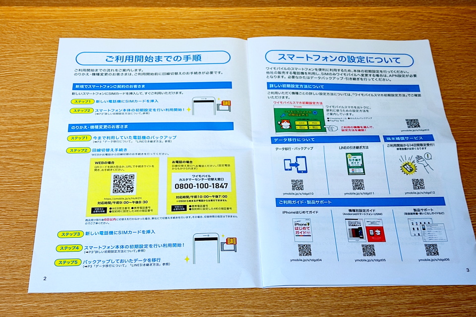 この冊子では回線切り替え手続きの後にSIMカードを挿入してスマホの初期設定をするという手順で記載されているが、筆者は先にSIMカードを挿入してスマホの初期設定をしてから回線切り替えを実施し、特に問題はなくできた。回線切り替えの操作については後述する。
