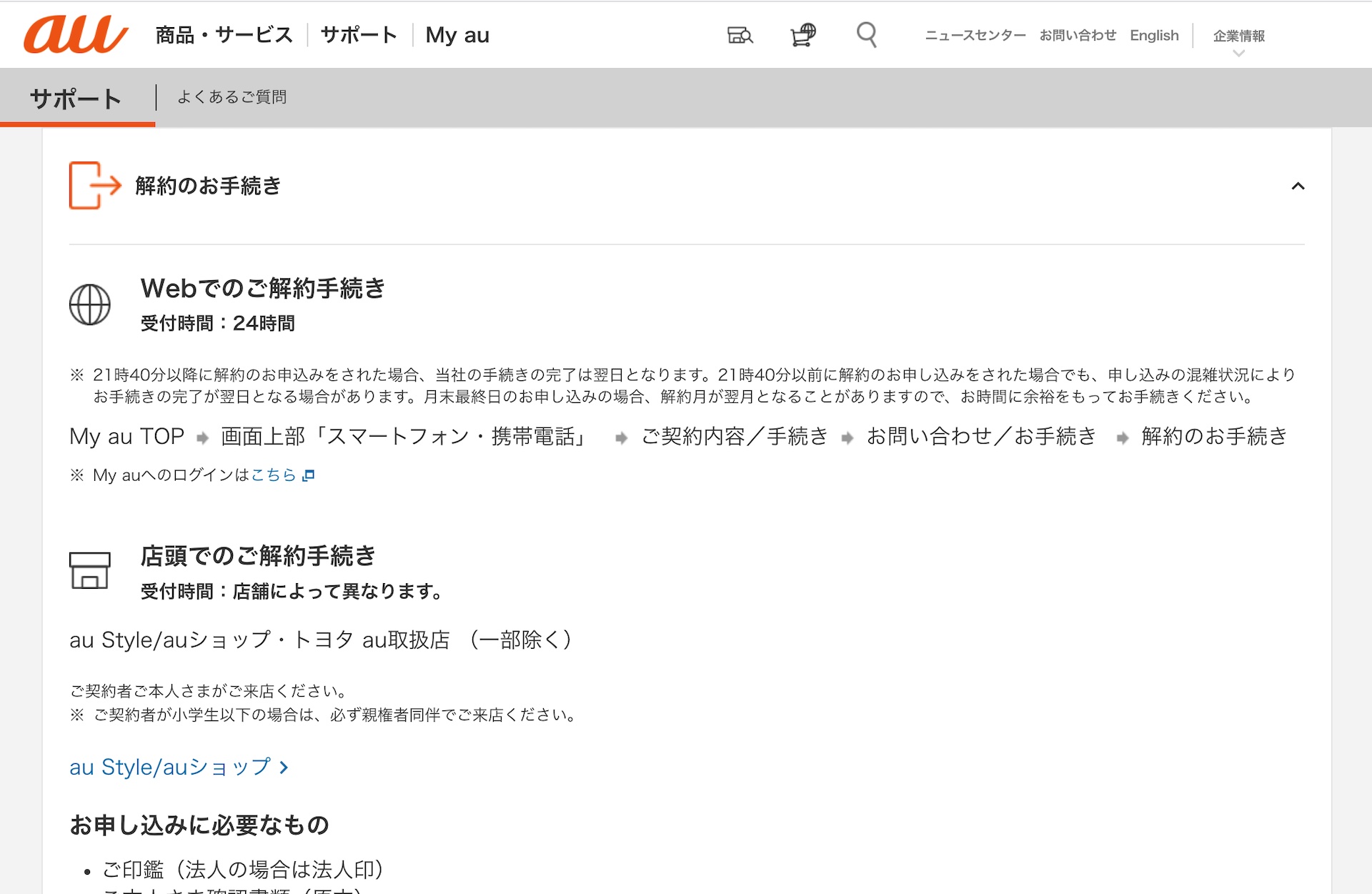 | auとUQ mobileでもWeb解約が可能に!オンラインサポート「My au」や「my UQ mobile」から |