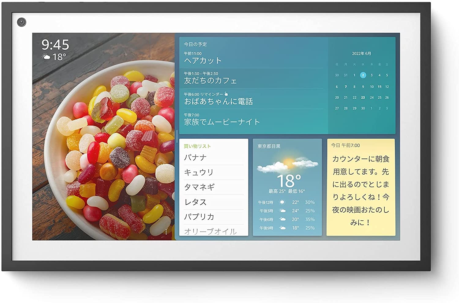 また次世代の「Amazon AZ2 Neural Edge Processor」を搭載し、ホーム画面にコンテンツをローテーション表示できるほか、ウィジェット機能によって好きなようにカスタマイズできるように再設計され、家族と共有したいスケジュールの表示・更新、買い物リストへの追加・削除、やることリストの確認などが簡単に行えるほか、キッチンやダイニングに設置すれば、レシピを見ながら料理をすることもでき、ウィジェットは常時更新されるため、最新の情報を把握可能だとしています。
