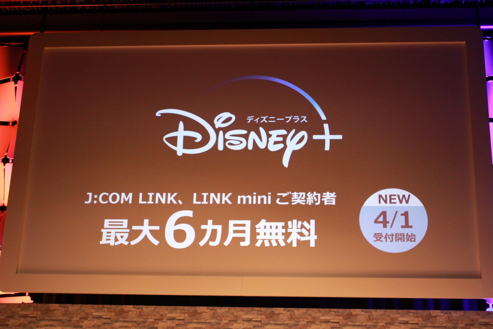 再び登壇した井村氏は、魅力的なコンテンツとそれらを快適に楽しめる環境の提供を通して「感動の時間」を届けたいとした上で、ウォルト・ディズニー・ジャパンとの新たな取り組みは2022年4月1日から開始し、J:COM LINKおよびJ:COM LINK miniの契約者を対象に、Disney+の月額利用料を最大6カ月間無料にすることを発表した。