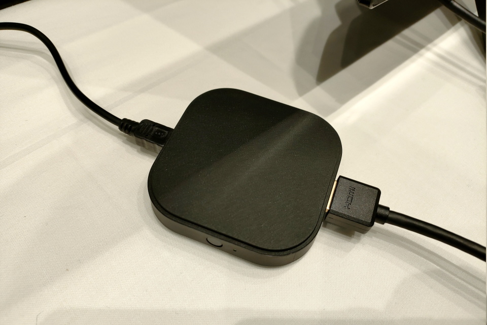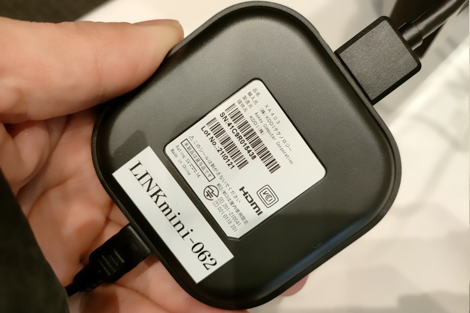 展示品の背面には品名(型番)が「XA403」、製造がAskey Computer Corporation、提供元がKDDIと記載されていた。リモコンよりも小さく、ケーブルを2本接続するだけで利用できる。