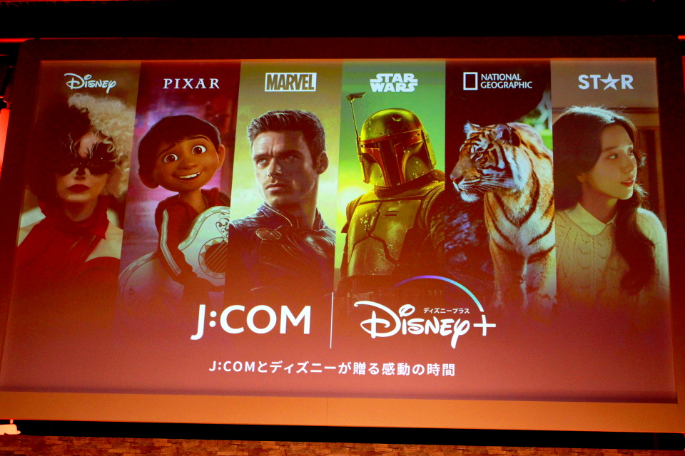 JCOMは3月23日に都内で「J:COM 新パートナシップ 発表会」を開催し、ウォルト・ディズニー・ジャパンとのパートナシップ拡大を発表。ウォルト・ディズニー・ジャパンも、同発表会でJCOMとのパートナーシップや、同社が展開する動画配信サービス「Disney+(ディズニープラス)」の概要および配信予定の作品などについて説明した。