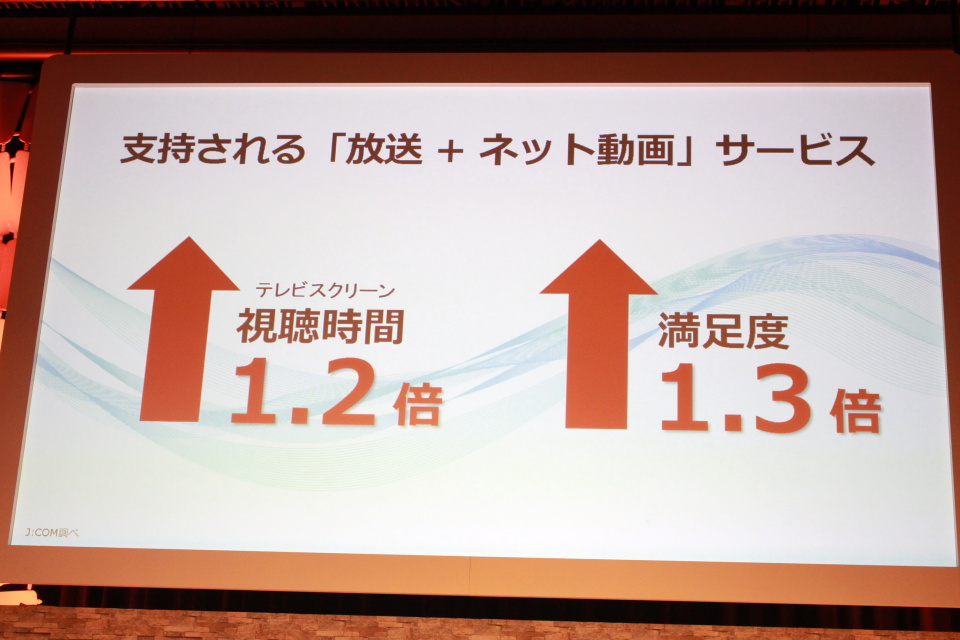 J:COM LINKの利用者はそれ以前のテレビサービスに比べて、テレビスクリーンでの視聴時間が約1.2倍、満足度も約1.3倍増加しているのだという。