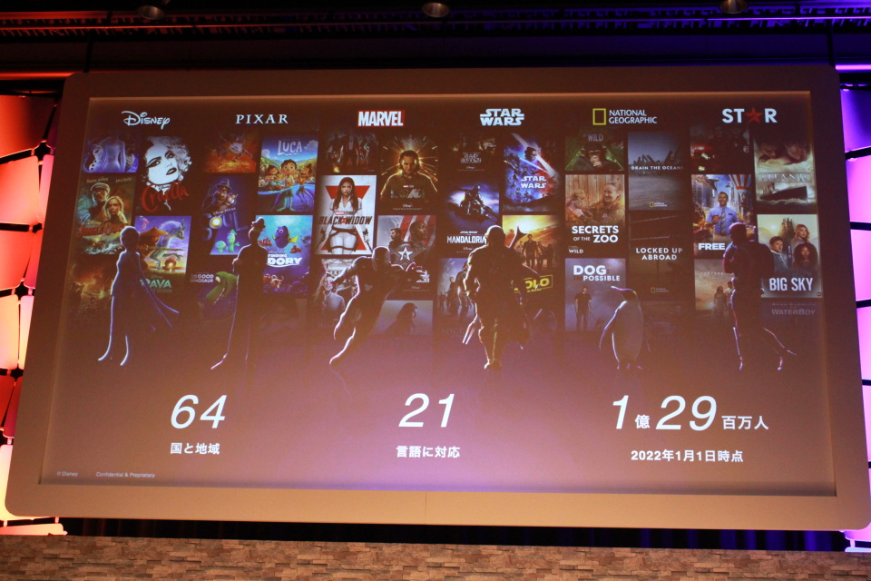 Disney+は、2022年1月時点で全世界で1億2千9百万人以上の加入者を抱え、21言語に対応、64の国と地域でサービスを提供しており、今後も順次サービス提供国を拡大していく予定。