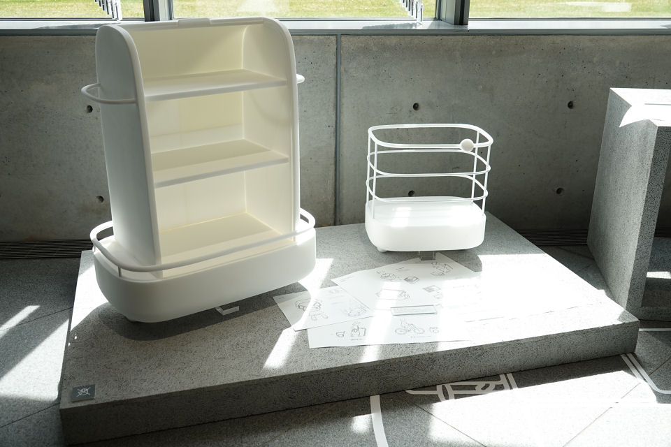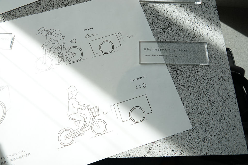 それは「乗らないモビリティ」というコンセプトから生まれたデザインで、人の移動に自動で付いてくるカーゴキャリーであったり、自走式のランチボックスのようなものであったり。