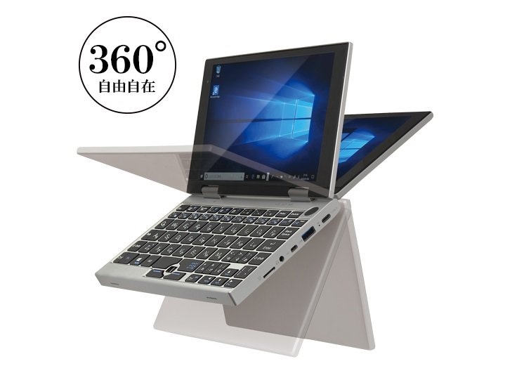 ディスプレイは10点マルチタッチ(静電容量式)に対応した約7インチWUXGA(1920×1200ドット)IPS液晶で、引き続いてタブレットモードへの対応や360°回転キーボードを搭載し、サイズは約181×113.6×19.6mm、質量は約560g、本体色はシルバーの1色のみとなっています。ディスプレイ面には約30万画素CMOSカメラも搭載。