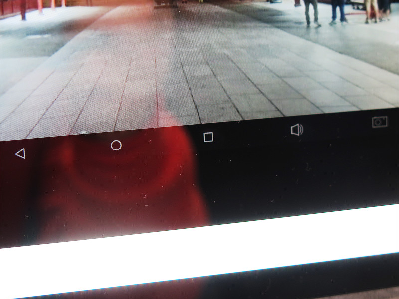 かなり光量の強いLEDライトが鏡の周囲に配置されている。また、Android端末なのでホームキーなどの操作ボタンが確認できます。