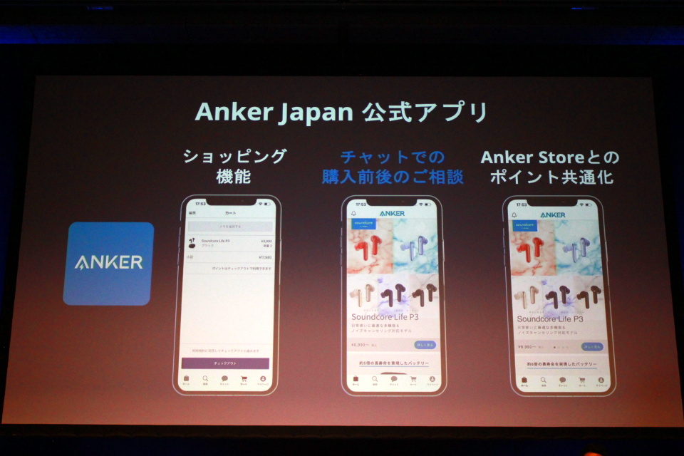 再び登壇した猿渡氏は、「購入の利便性」と「カスタマーサポート」について触れ、創業時からこれまでの間にアップデートしてきたことを説明。一方で、新たな取り組みとして、Anker Japanの公式アプリとAnker JapanのLINE公式アカウントの運用を開始することも発表した。