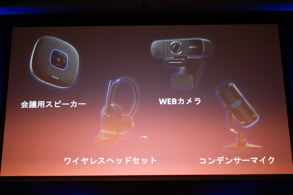 続いて、AnkerからもうひとつのサブブランドAnkerWorkについて。2020年2月に会議用Bluetoothスピーカー「Anker PowerConf(アンカー パワーコンフ)」を発売して以降、Webカメラやワイヤレスヘッドセット、コンデンサーマイクなど製品カテゴリーを広げてきたが、これら仕事環境をよりスマートにするべく製品を提供するためサブブランドのAnkerWorkとして独立させ展開していくという。