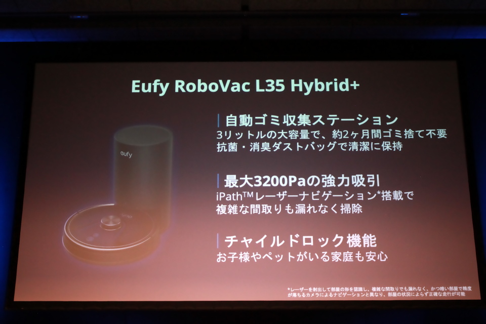 Eufy Cleanからはシリーズ初となる自動ゴミ収集ステーション付きの「Eufy RoboVac L35 Hybrid+(ユーフィ ロボバック エルサーティファイブ ハイブリッドプラス)」と、自動ゴミ収集ステーションが付属しない「Eufy RoboVac L35 Hybrid(ユーフィ ロボバック エルサーティファイブ ハイブリッド)」を2022年7月上旬に発売する予定。価格は自動ゴミ収集ステーション付きが69,990円、自動ゴミ収集ステーションが付属しないモデルは49,990円になる予定。