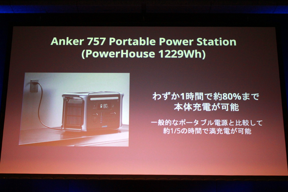 近年、アウトドア需要や防災需要により、ポータブル電源のニーズが高まっており、Ankerでは製品のラインナップを強化してきた。そして今回、ポータブル電源のカテゴリーにおいて、シリーズ最大容量かつ最高出力を誇る最上位モデル「Anker 757 Portable Power Station(PowerHouse 1229Wh)(アンカー ナナゴーナナ ポータブル パワー ステーション)」をラインナップに追加する。