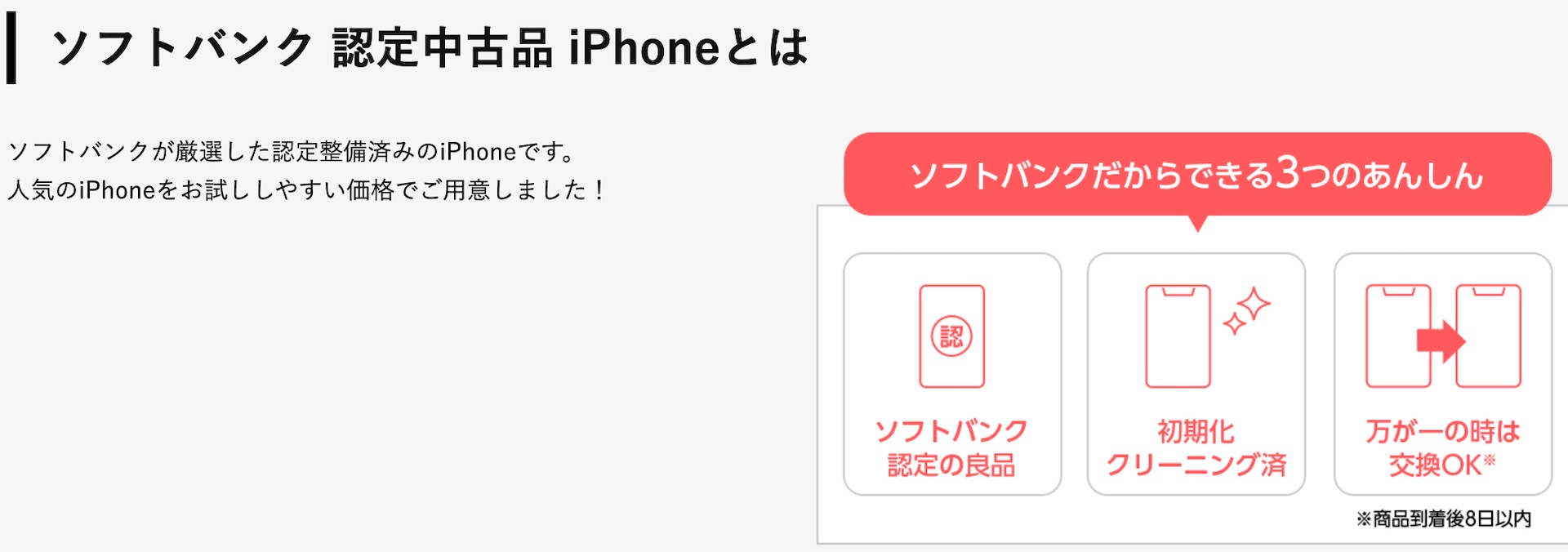 ソフトバンク 認定中古品 iPhoneはソフトバンクが厳選した認定整備済みの製品で、ソフトバンクが販売したiPhoneを次の製品に機種変更したりする場合に買い取り、それをバッテリー交換やクリーニング、修理などをして再整備したリユース品です。