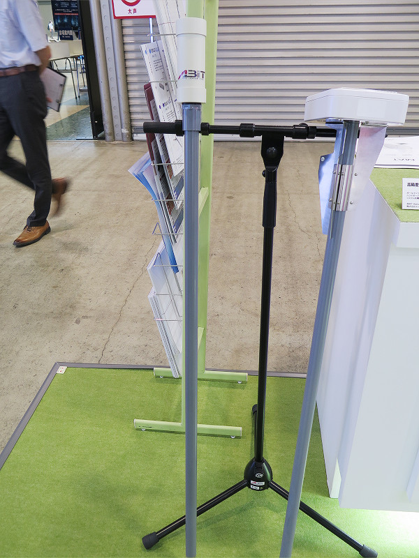 特徴はその小ささで、説明員によると更に小型化を目指しており、ジュースの250ml缶程度の大きさを目標としているそうです。小型化することで、取り回しや設置場所の自由度が上がるので、屋外の目立ちにくいところにセンサーを設置できるようになるなどの利点があるということでした。
