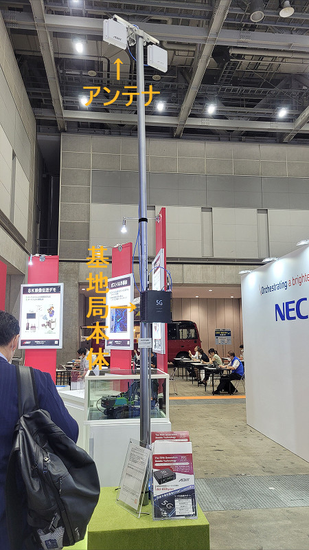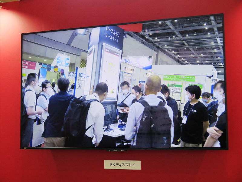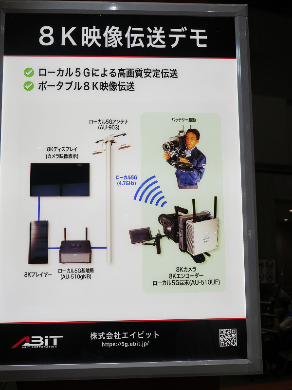 今回のエイビットブースの展示の目玉がこちらの8K動画をリアルタイムでローカル5Gを使って無線で送信し、表示するというものです。