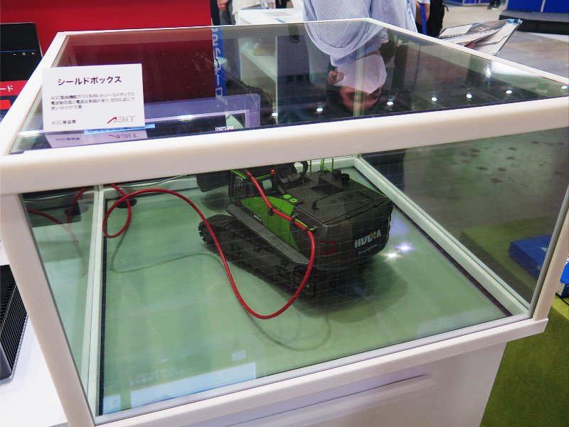 ガラスメーカーのAGCと協力して製作した「シールドボックス」。電波暗室のように電波を吸収させて室外へ電波が出ないようにしたり、逆に電波が反射しやすいように加工された2つの面を使い分けることが可能。