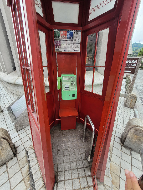 最後にもう一つだけ。門司電気通信レトロ館の外。通り沿いのところに、初期のものを再現した電話ボックスがあり、実際に利用することができます。(ボックス内に設置されている公衆電話機は現行モデルのものですが)中々に写真映えもするので、是非こちらも見てみてくださいね。
