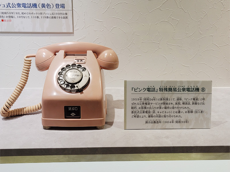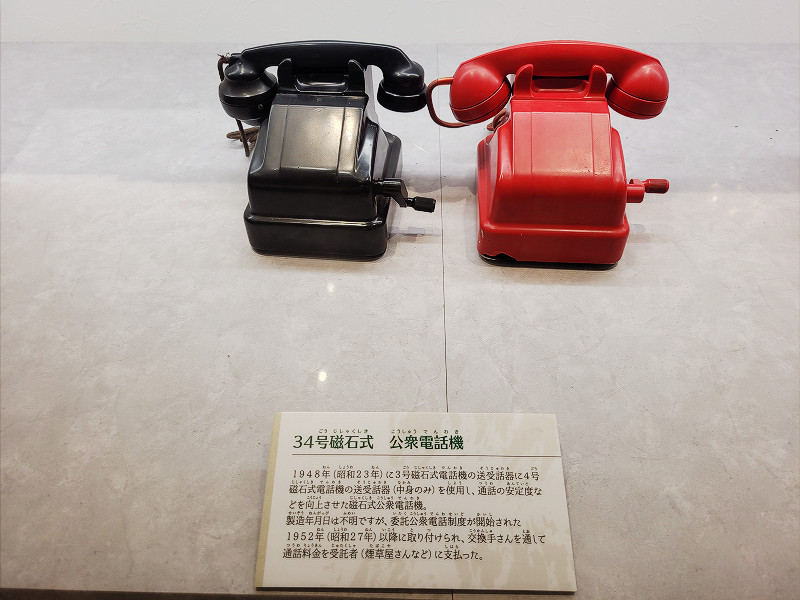 現在では携帯電話などの普及により設置台数が少なくなってきているものの、災害時などの緊急時にはなくてはならない存在でもある公衆電話の展示を紹介していきます。