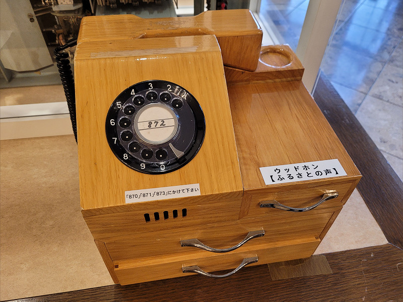 1980年台にNTTが販売していた固定電話機で、600型電話機の機能をオール木製ボディに閉じ込めて、ちょっとした小物を入れるのに便利な引き出しを搭載したNTT自らが販売した変わり種固定電話機です。館内には実際に触ってデモンストレーション用の電話を掛けられる実機が展示されていました。