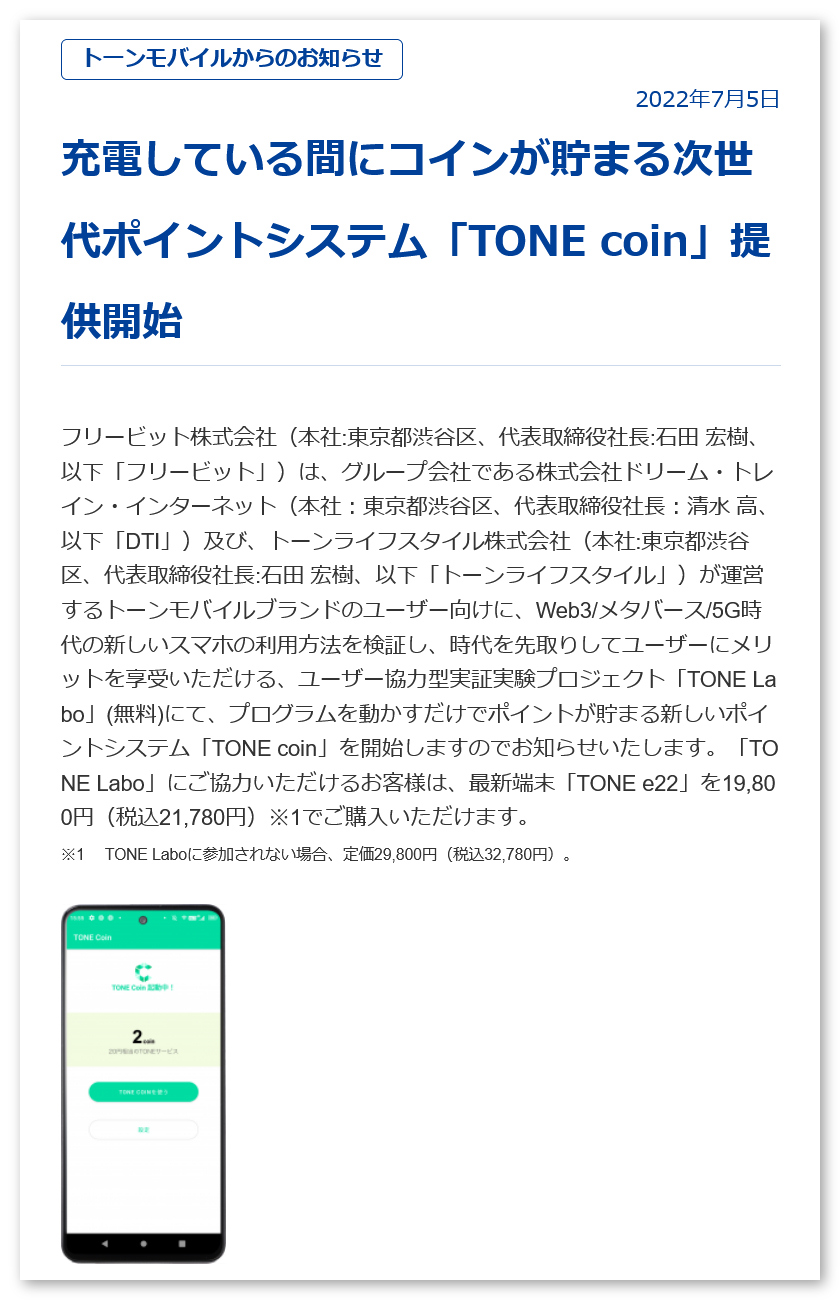 また、トーンコインは現在TONE e22のみでの提供となっていますが、発表会の場では「今後状況を見て他機種にも展開したい」とも話していました。