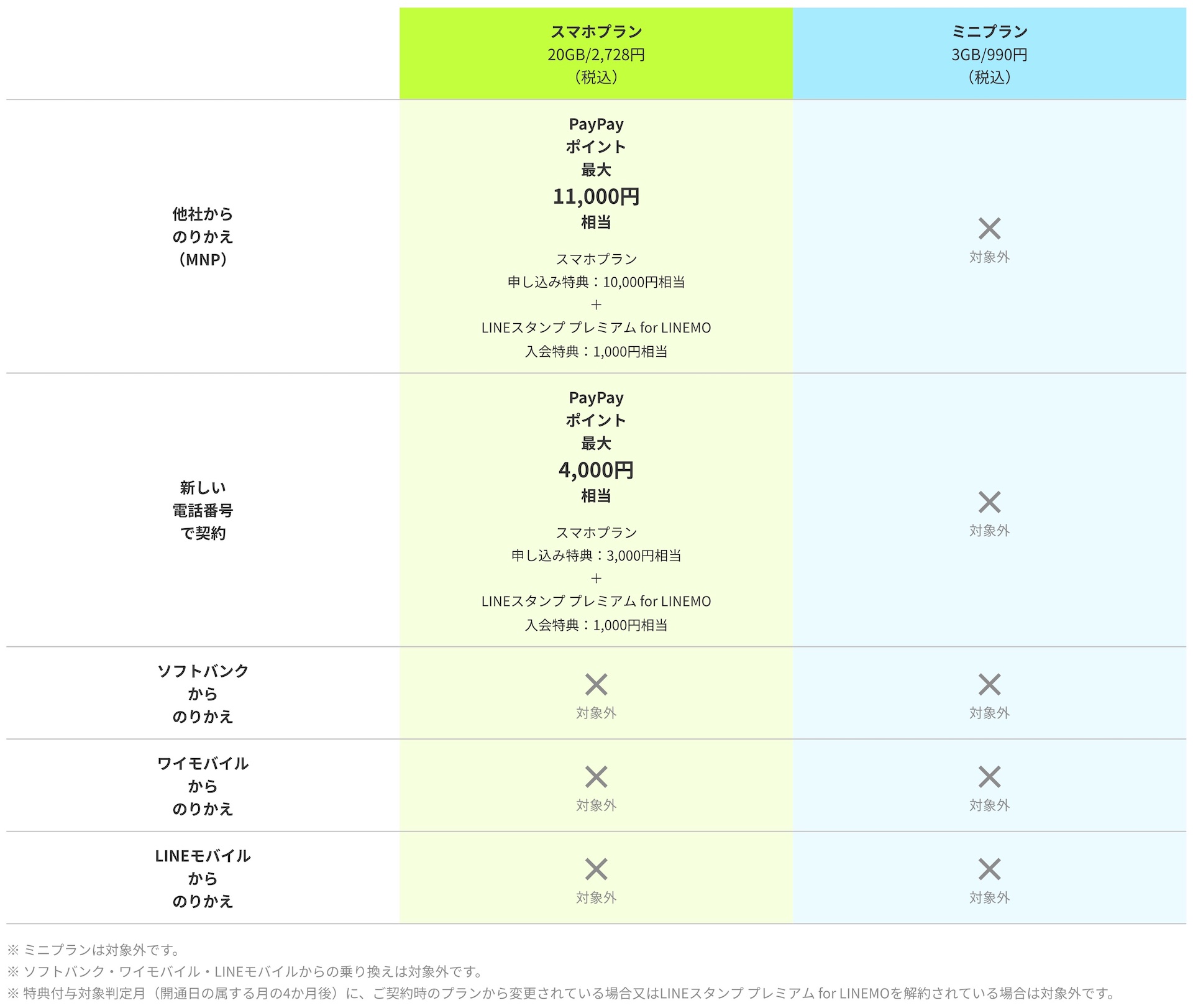 (1)キャンペーン対象申込期間中にLINEMOのスマホプランにMNPまたは新規契約で申し込むこと