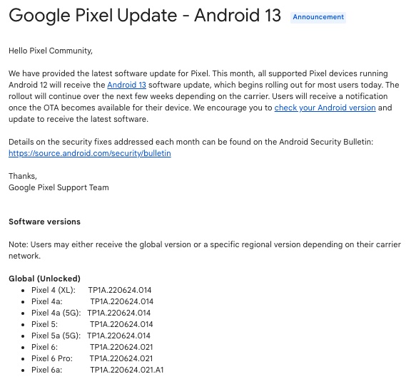 ・Google Pixel Update - Android 13 - Google Pixel Community