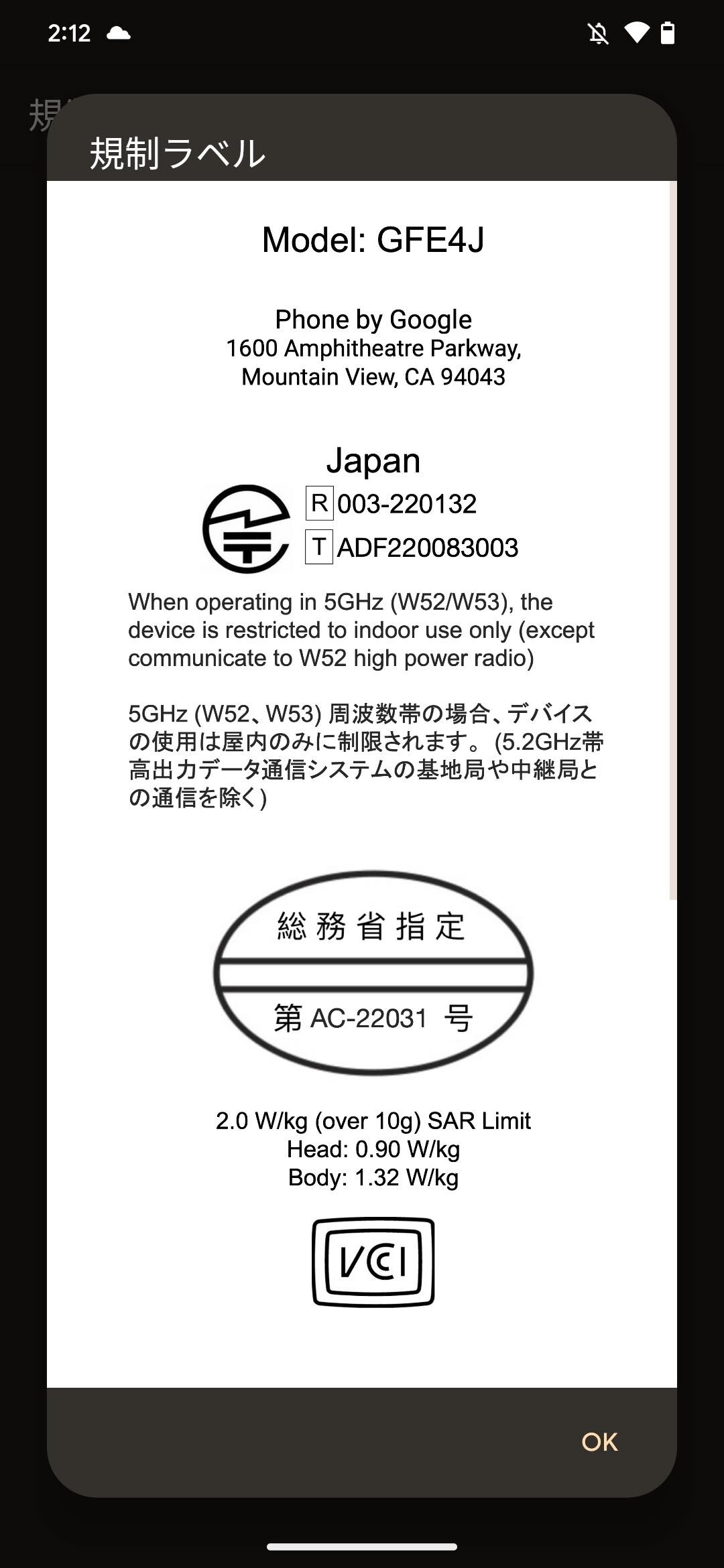 技適の認証番号はPixel 7が「003-220133」と「ADF220084003」、Pixel 7 Proが「003-220132」と「ADF220083003」。なお、両機種ともにWi-Fi 6Eにも対応しているものの、日本では少なくとも現時点では利用できません
