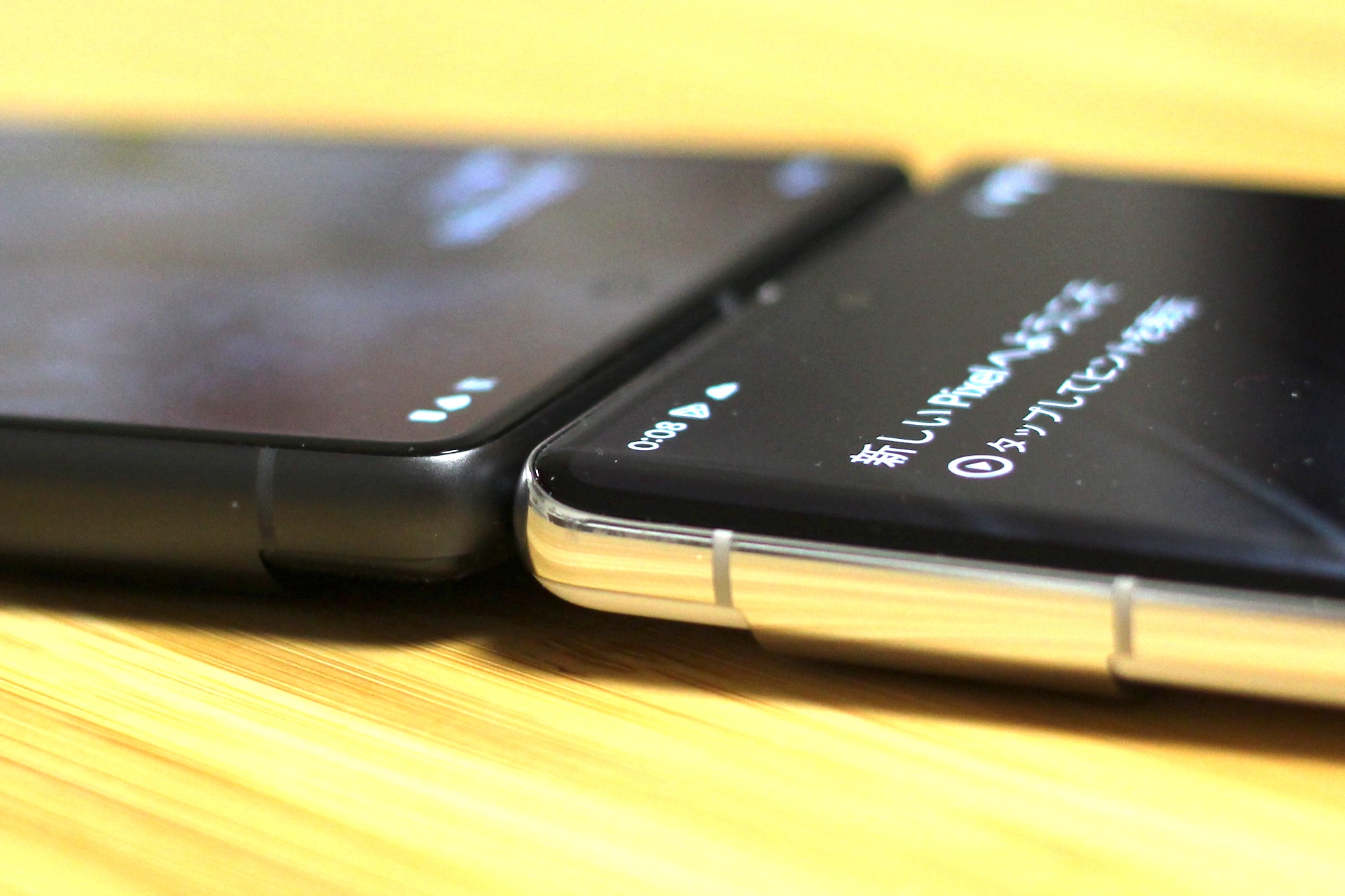 ディスプレイの左右端はPixel 7 ProではPixel 6 Proと同じようにラウンドした3Dカーブ形状ですが、Pixel 6 Proよりは湾曲が急になっていてラウンド感は弱くなっています。一方、Pixel 7はPixel 6と同様に少し角が落とされているものの、フラット形状となっており、ともに強化ガラス「Corning Gorilla Glass Victus」で覆われています。