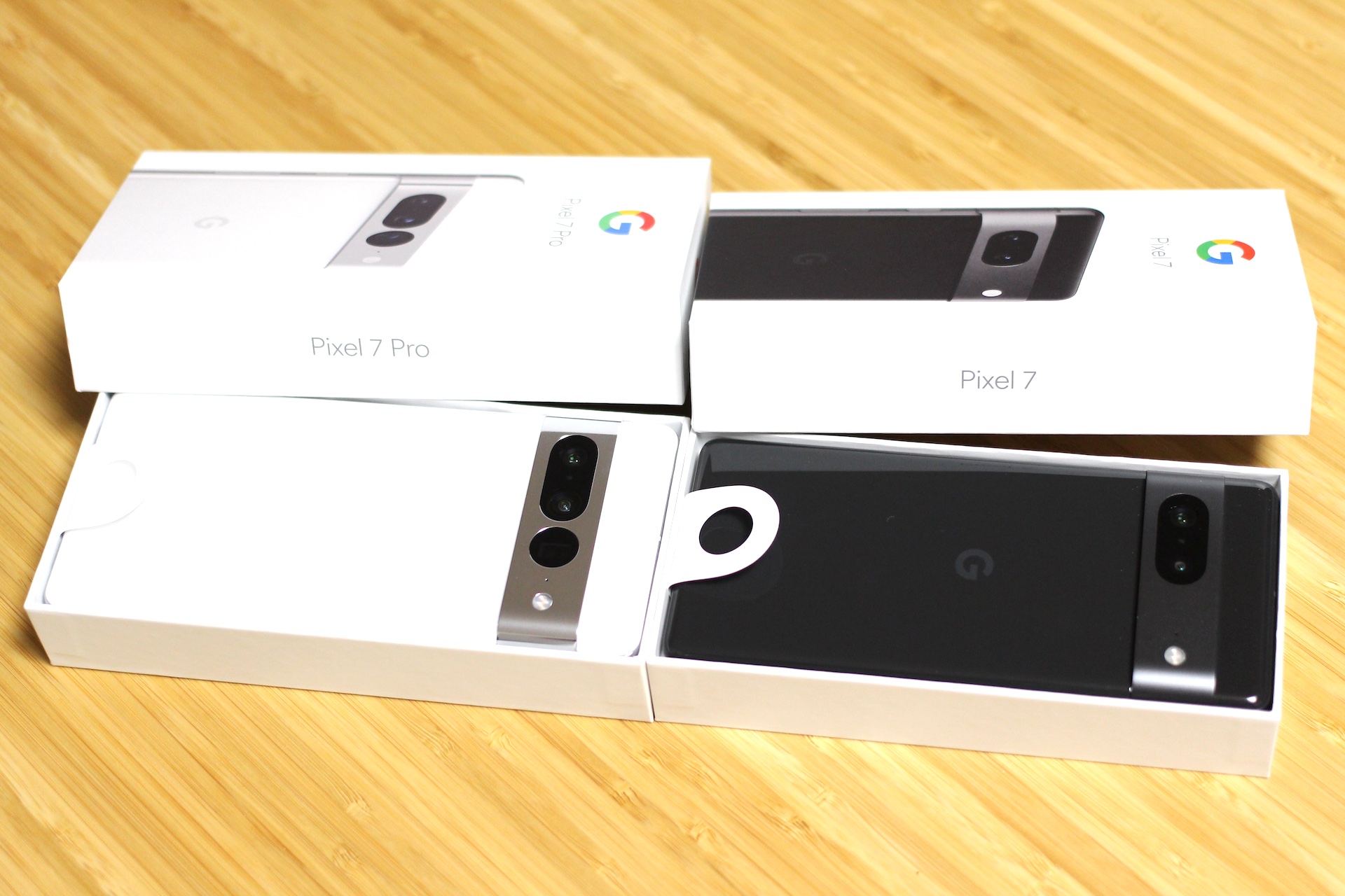 今回はPixel 7 Proを購入したのですが、まずはGoogle JapanよりPixel 7とPixel 7 Proの日本向け製品をお借りしたので、まずは両機種を開封して外観や同梱品、基本機能を写真や画像、動画を交えて紹介します。日本向け製品はGoogle ストアおよびau、SoftBankで共通となっており、Pixel 7が型番「G03Z5」、Pixel 7 Proが型番「GFE4J」でともにおサイフケータイ(FeliCa)に対応しています。