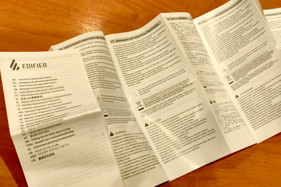ワイヤレスイヤホン製品と同じフォーマットで同じサイズにしてコストカットしていることは容易に想像できるが、ヘッドホン製品で個装箱もそれなりのサイズがあるにも関わらず、取扱説明書や安全上の注意のサイズをここまで小さくして文字も読みづらくすることにユーザーメリットはないだろう。こうした点は今後改善してほしい。