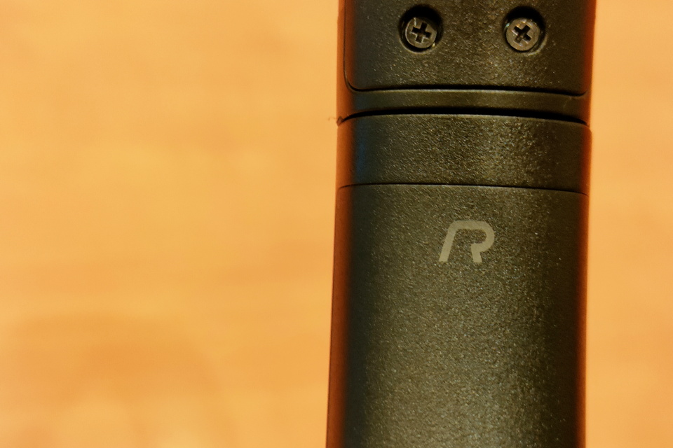 イヤーカップではなく小型のイヤーパッドである点を除いては一般的なヘッドホンと大差はない。右のイヤーパッドには状態を知らせるLEDランプと操作ボタンを搭載している。3つのボタンがつながったボタンの中央は電源ON/OFFボタンとなっており、指の腹で識別できる程度には出っ張りがある。逆に上下の「+」「-」のボタンは、指の間隔だけではややわかりにくいため慣れが必要だ。