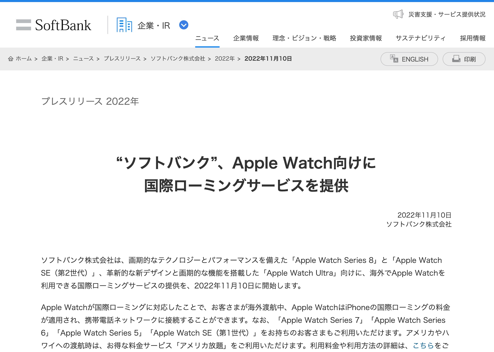 ・“ソフトバンク”、Apple Watch向けに国際ローミングサービスを提供 | 企業・IR | ソフトバンク