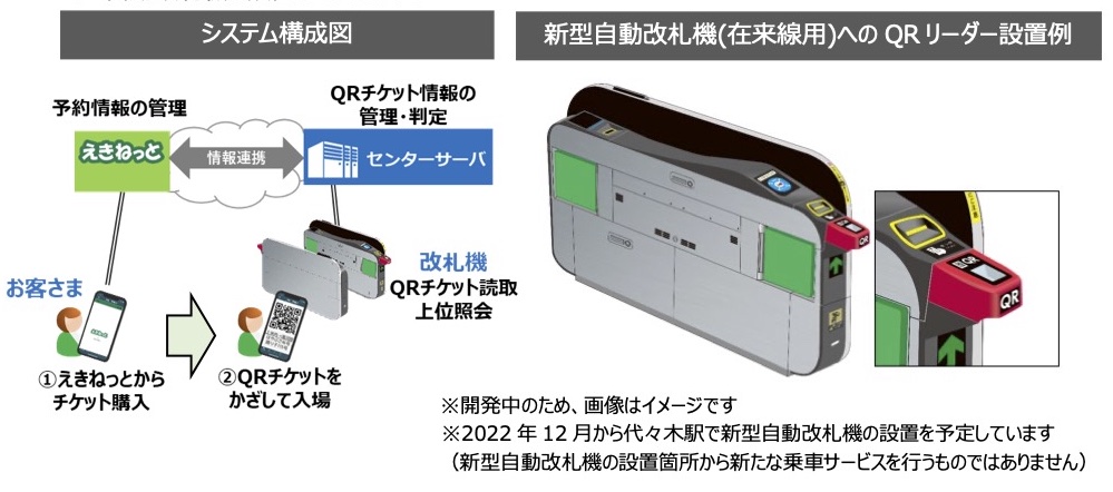 2022年12月から開始する自動改札機の老朽取替に合わせて一部の改札(通路)にQRリーダーを搭載した新型自動改札機を設置していき、事前に「えきねっと」で購入した電子切符「QRチケット」のQRコードをスマートフォン(スマホ)などに表示し、この改札機がQRコードを読み取ることによって利用できるようになります。