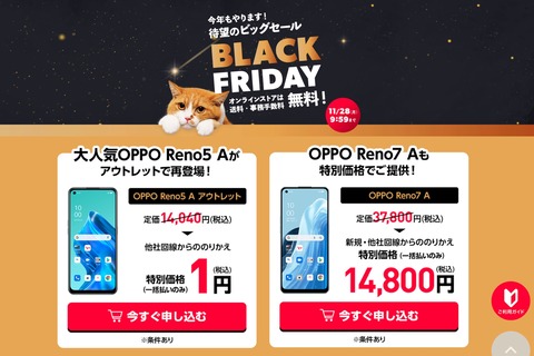 | Y!mobileの公式オンラインストアにてBLACK FRIDAYキャンペーンが開始! |