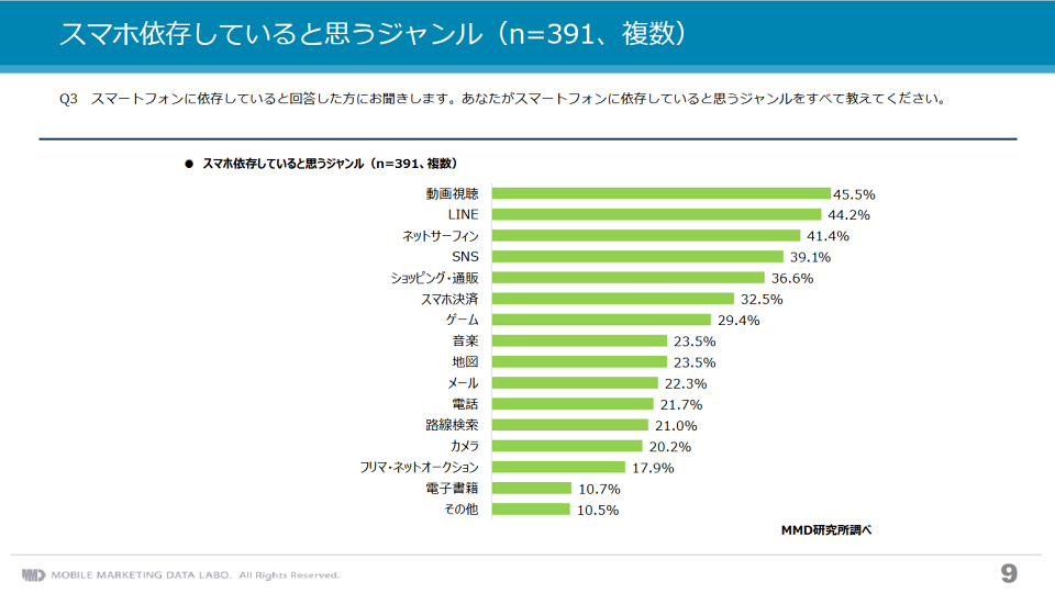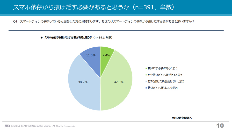 MMD研究所のアンケート調査では「スマホ依存から抜けだす必要があると思うか」という項目もありましたが、状況はそれほど簡単にYESかNOかで判断して良いものではないように思います。