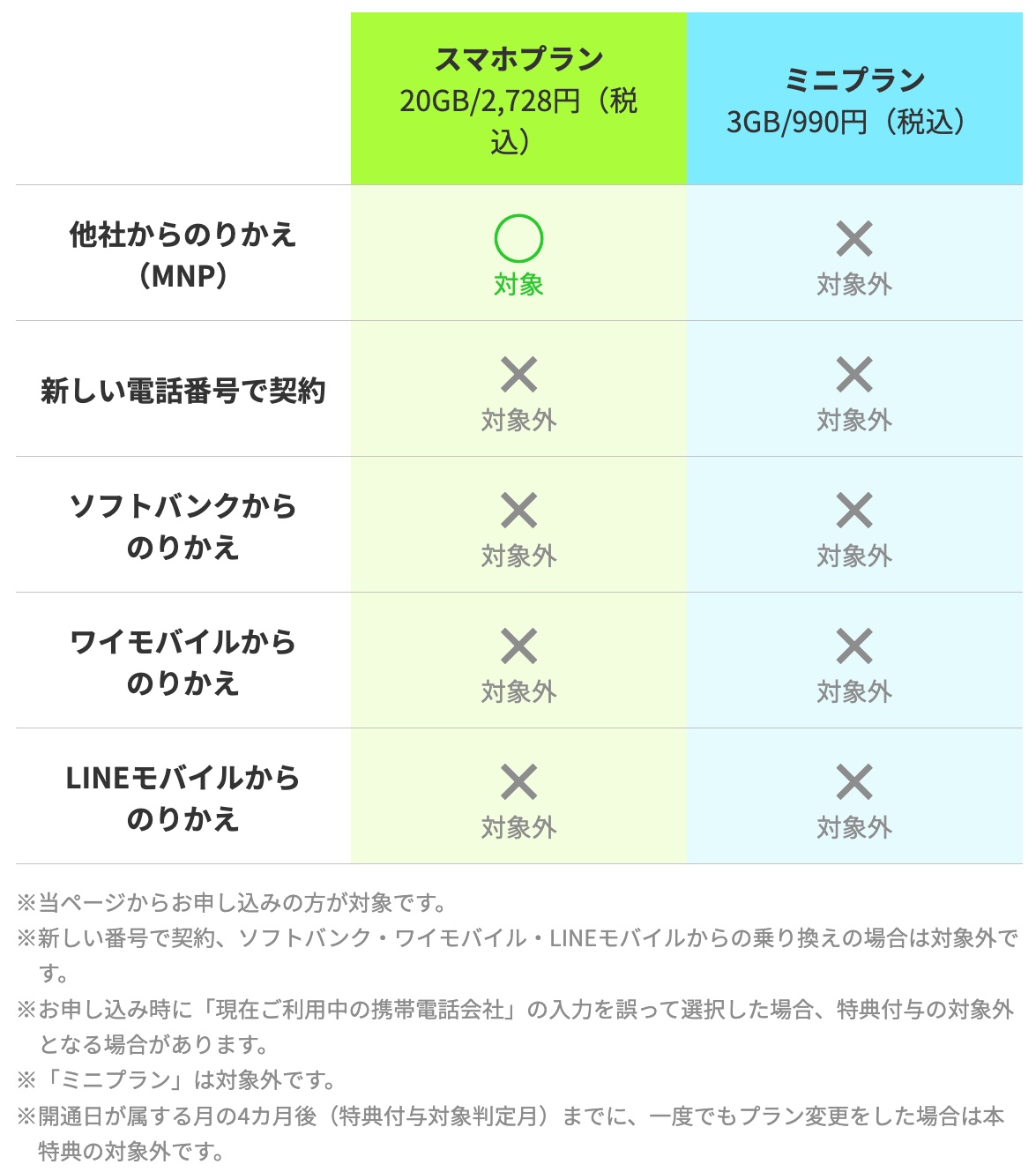 (1)キャンペーン対象申込期間中にLINEMOのスマホプランにMNPで申し込むこと
