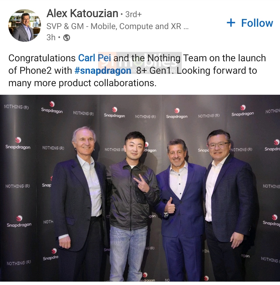 ・Nothing Phone (2) chipset accidentally confirmed by Qualcomm executive