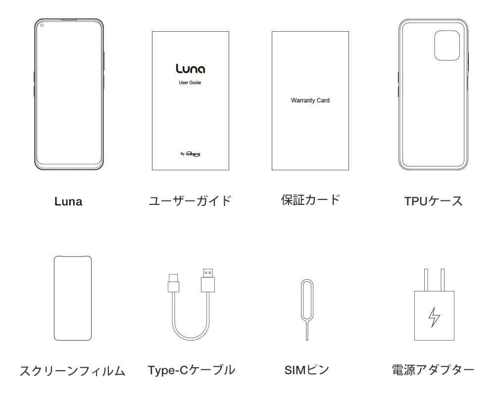 位置情報取得はA-GNSS(GPSおよびGLONASS、Galileo、BeiDou)に対応。SIMはnanoSIMカード(4FF)スロットが2つのデュアルSIMデュアルVoLTE(DSDV)に対応し、携帯電話ネットワークの対応周波数帯は以下の通り。同梱物はUnihertz Luna本体のほか、TPUケースおよび画面保護シート、USB Type-C to Aケーブル、ACアダプター、SIMピン、ユーザーガイドなどの紙類となっています。