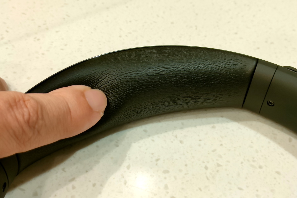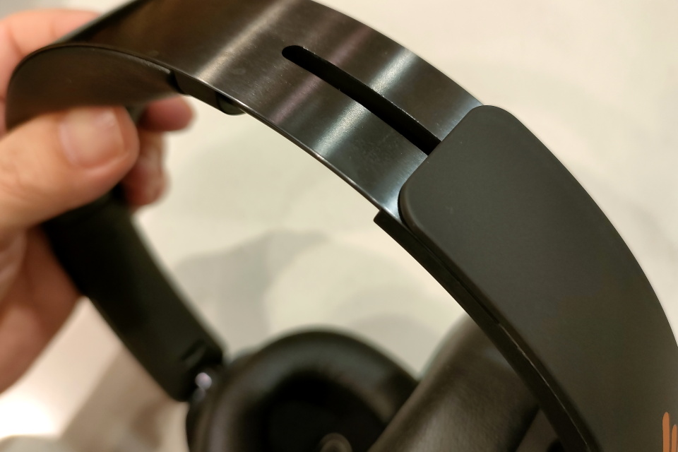 一般的なヘッドホンと比べてやや特徴的なスライダーは、単純に伸縮するスタイルではなく、レール(溝)によって伸縮する。ヘッドバンド上部に収納され出し入れすることで伸縮する通常のヘッドホンに対し、Edifier WH950NBではイヤーカップ側のバンド(柄)部分に収納する仕様になっている。上に収納するか、下に収納するかの違いだが、ややクセのある伸縮感があるため、最初は違和感を抱くかもしれない。