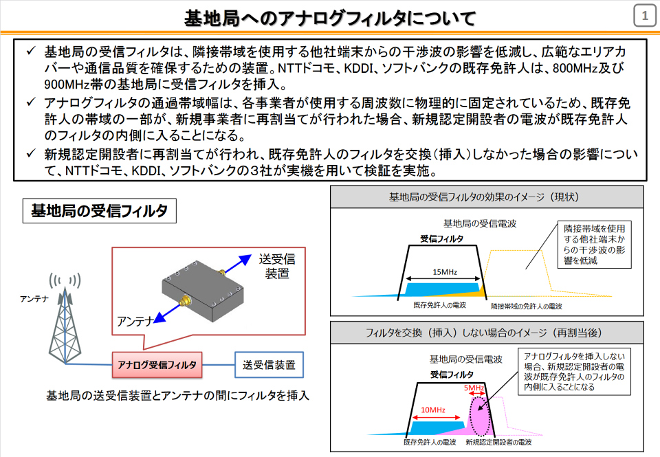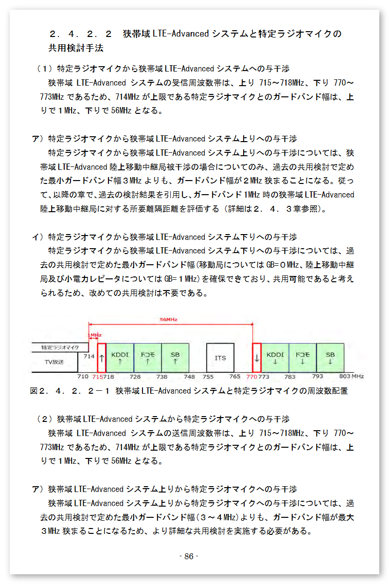 新プラチナバンドが影響を与える(干渉する)かもしれないと言われているのは地上デジタルテレビ放送や特定ラジオマイク向けの周波数帯ですが、この点についての影響の範囲や影響が出る条件についての検証は概ね完了しています。