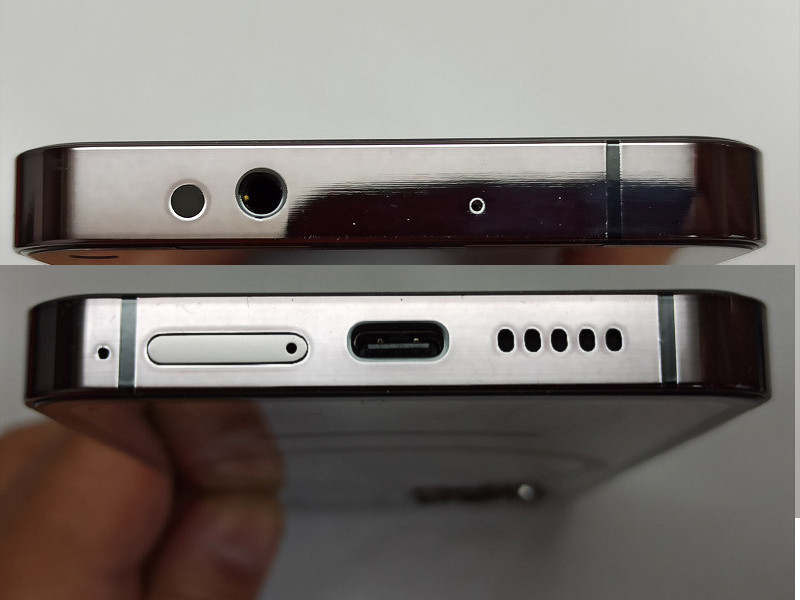 本体上側面には赤外線リモコン用ポートと動画撮影など用のサブマイク、3.5mmイヤホンマイク端子があり、下側面にはSIMカードスロットおよび通話用マイク、外部スピーカーがあります。